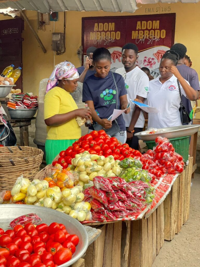 Members of Join Me Today (JMT) embarked on a community outreach programme as part of the organization’s shared commitment to achieving environmental sustainability and promoting cleaner cities. As part of this initiative, 20 enthusiastic youth volunteers, led by the Organization’s Campus Chapter President, Mr. Hamidu Abdulai, visited local entrepreneurs at the bustling Winneba Central Market. Their mission was clear: to encourage stronger commitment toward recycling and plastic waste reduction within the community.